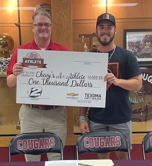 Zac takes pride in representing Ada High School on the field. He’s a 3-year starter for the football team, where he played a number of positions on both sides of the ball, and was named all district as a senior.On the baseball field, Zac has played on the varsity squad all four years, and has a career batting average of over .400. Once he sets a goal, he makes sure he accomplishes it.Zac always has a positive attitude and always has a smile on his face whether he fails or succeeds.He’s a hard worker and a team player who is loyal to his teachers and his peers.In his free time, Zac volunteers with United Way, and Mentors future Ada Cougars.And that’s why Zac Carroll is Texoma Chevy Dealers A+ Athlete of the week!