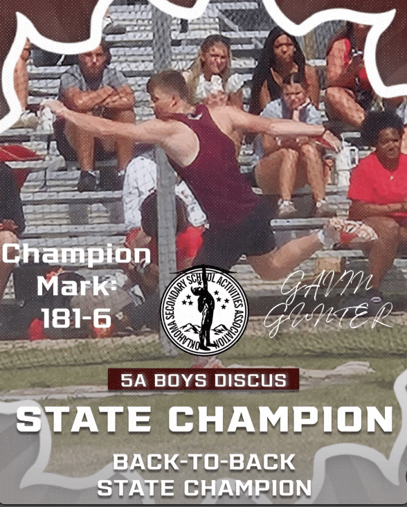 Gavin Gunter is now two-time state champion and the undisputed best discus thrower in Oklahoma and Ada history. He finished his career winning 21 track meets in a row.
