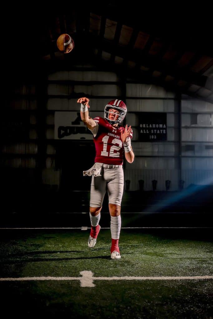Senior Brock Boyles has done it all as quarterback of the Ada Cougars. For the past three years he has led the Cougars to the Class 4A playoffs, going as far as the state semifinals in 2023. The last two years he has passed for nearly 5000 yards and set the school record for passing yards and touchdowns in a single season last year with 2742 yards and 31 touchdowns. And he’s done it all under the watchful eye of his father and head coach Wade Boyles. “Brock is a rare four-year starter that is the cornerstone of our team,” said dad/coach. “But what sets him apart is who is off the field-a high character young man who has earned the respect of coaches, teammates, teachers and the entire school community. Being his dad and watching him grow and develop has been awesome as well as watching him become a leader of the team.” In addition to football, Brock also plays baseball which he says he likes a little better because he’s played it longer “but football has grown on me more the last few years.” He and some of his teammates also coach a youth league flag football team. “It’s great to see him giving the benefit of his knowledge to the kids who cheer for him on Friday nights,” said his dad. Brock is part of a large senior group this year that has been together with his dad coaching them almost the entire way and he is cognizant of the long tradition of Ada football as he enters his senior season. “The whole town is behind the team. Folks you don’t know will stop you on the street to ask about the team and the older players all come back to check on you so being a part of that tradition is big.” Early this coming season Brock will break the Ada career passing record, but he has his sights set on taking the Cougars all the way to the throne room in his final season. He is looking at colleges with offers already in hand from OBU and East Central and is thankful to have had his dad by his side on the journey. “He’s been by my side through everything, and it’s been fun to go to the playoffs with him and for him to be with me through recruiting.” He says he would like to be remembered as a good example for the younger generation and a good teammate that you could always talk to.