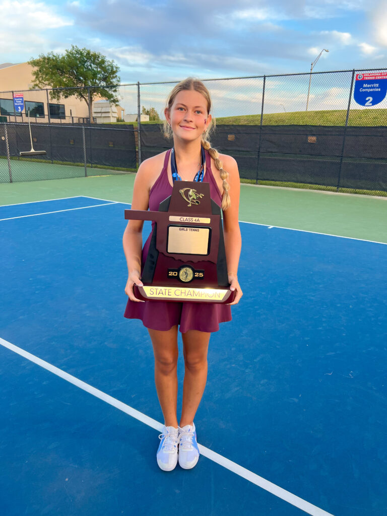 Her favorite moment in maroon and white is easy to pick. “My favorite memory in an Ada uniform so far has been winning the state championship match and getting to share and celebrate a state title with my team,” she said. Off the court, her schedule is packed. “I’m involved in National Honor Society, Pickleball Club, Serve Club, Spanish Club, Forensics Club, and Science Club. After high school, I plan to attend Brigham Young University and later pursue dental school.”